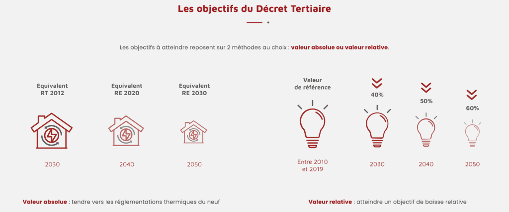 Trajectoire décret tertiaire 2030/2040/2050, scénario de réduction des consommations